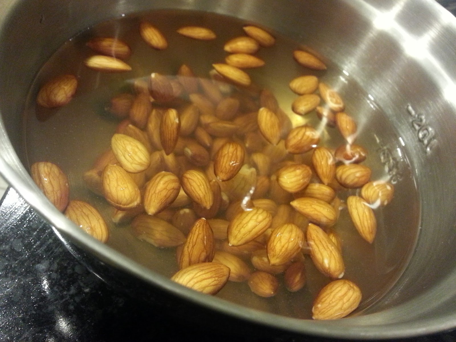 1. Soak almonds overnight in water (enough to cover them)